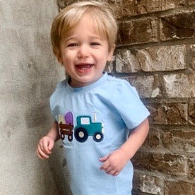 Blue Zig Zag Knit Easter Tractor Boy Shorts Set