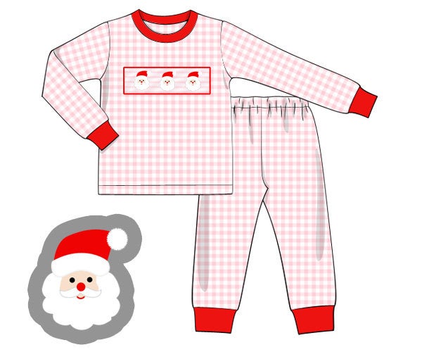 Pink Knit Gingham Santa Girl Pajamas
